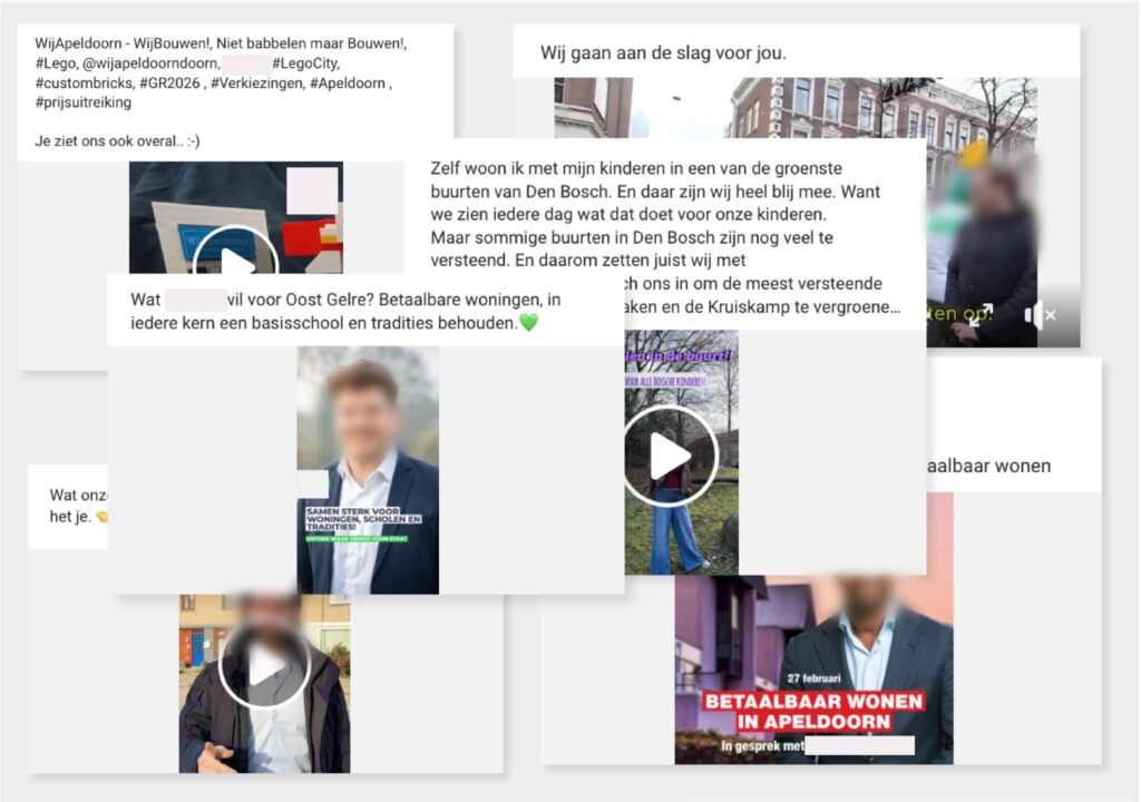 Net als bij eerdere verkiezingen zien we opnieuw partijen de fout in gaan: politieke reclames die volgens de eigen aankondigingen van platforms niet meer zouden mogen verschijnen, staan toch online (zie onderstaande afbeelding, nu met onherkenbaar gemaakte partijen).