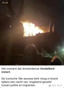Nog vóór 12 uur ’s middags waren er al meer dan 200 berichten gepost waarin de link tussen de Vondelkerkbrand en moslims of anti-christelijke terreur werd gelegd. Oók vanuit het buitenland. In sommige gevallen werd, zonder enig spoor van bewijs, gezegd dat moslims al ‘onze kerken’ platbranden. Ook incidenten in andere landen werden aangehaald als onderdeel van dit kennelijk Europa-breed anti-Christelijk complot.